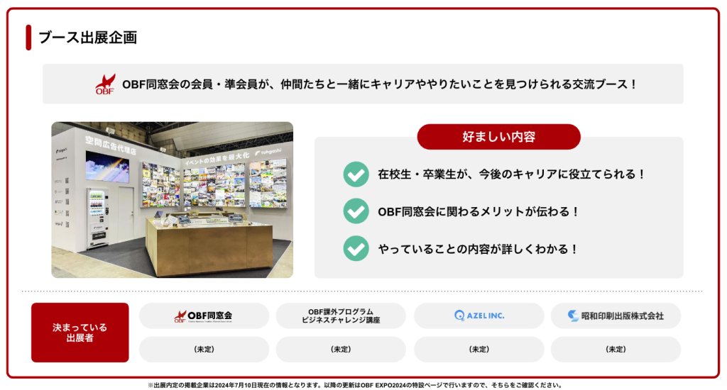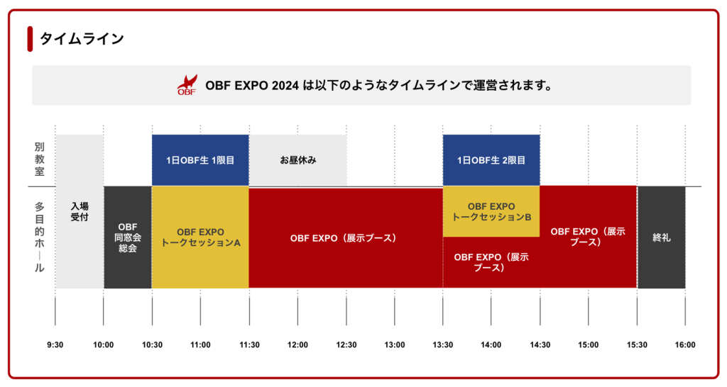 | 運営主催 / 協力 | OBF同窓会・OBF EXPO 2024 実行委員会 |